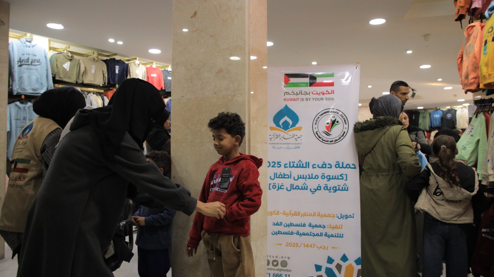 وزّعت جمعية المنابر القرآنية 200 كسوة للأطفال، و400 بطانية، و100 مادة تدفئة على الأسر المتضررة في قطاع غزة